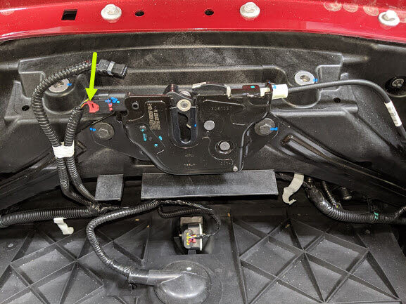 注4x clips, 1x connector, Frunk safety switch, 3x guide tabs, Align 3x tabs then push downward to secure clips
