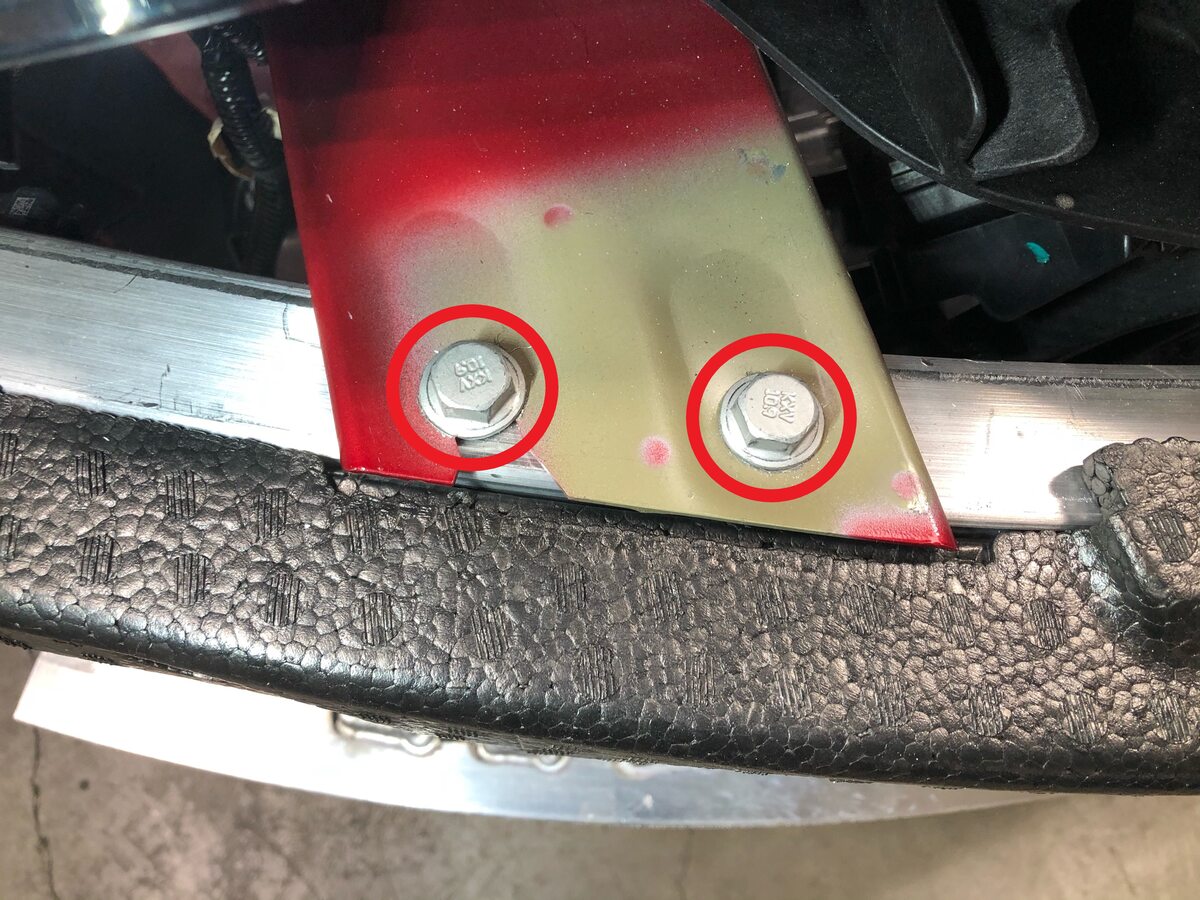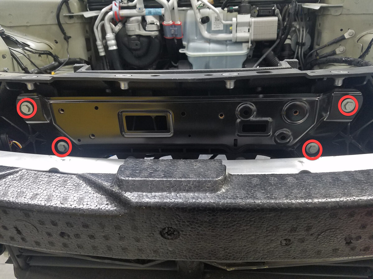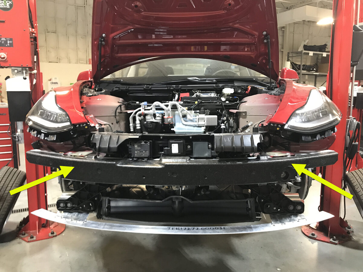 注Use a dead blow hammer as needed to install front bumper beam into front crush cans