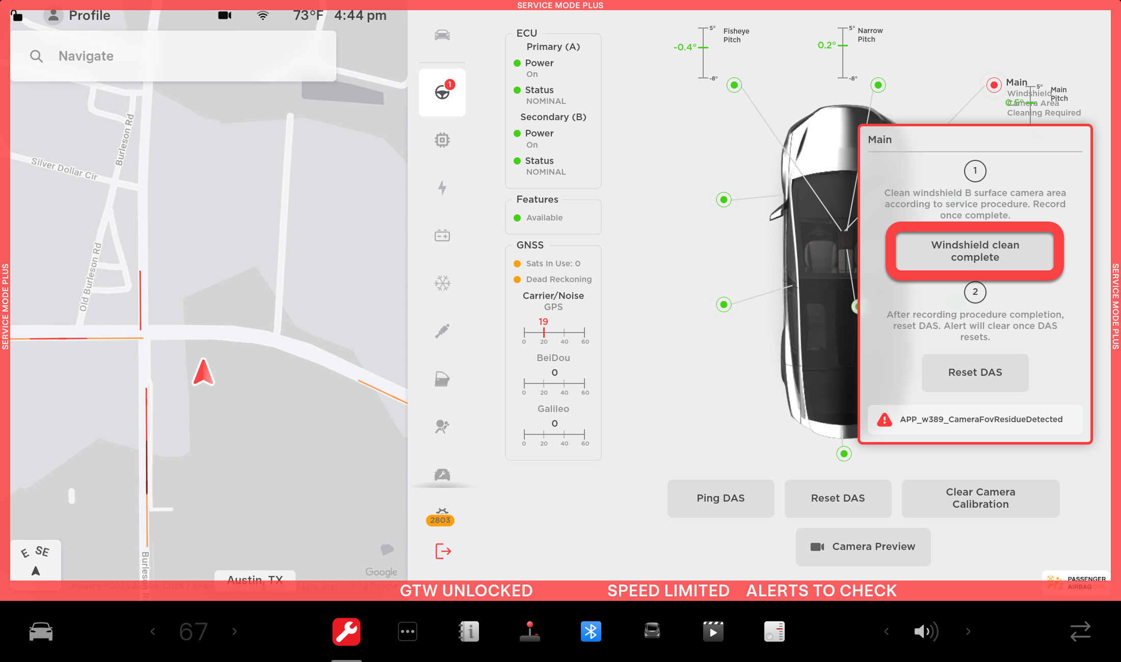 - 点击Reset DAS,以重置辅助驾驶系统。例行程序完成后,请将其关闭。