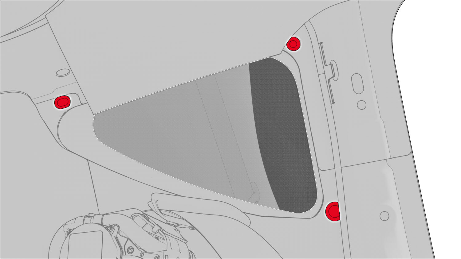 - 使用对角切割器、一字螺丝刀以及橡胶锤(若需要)破坏 LH 后角窗玻璃内侧的定位柱。