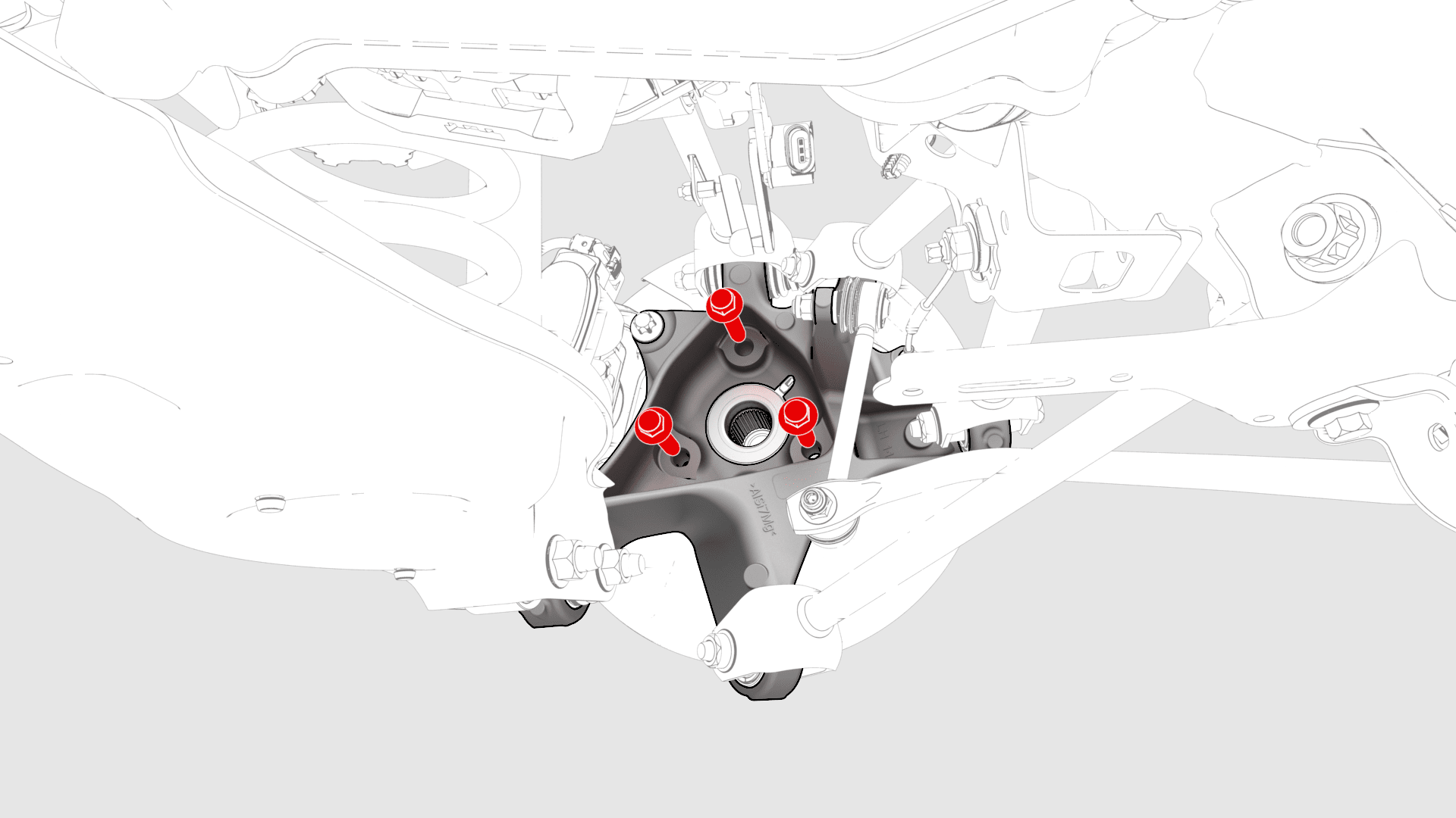 - 拆下并弃用将 LH 后轮毂固定到转向节的螺栓,然后从车上拆下轮毂。