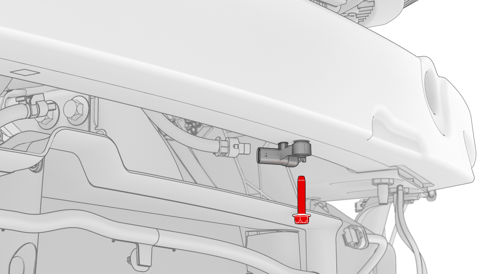 拆下将气囊传感器固定到前端支架的螺栓,然后从车上拆下传感器。