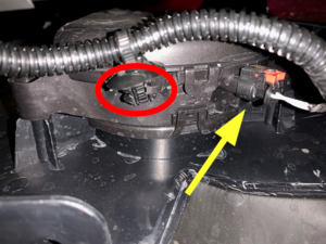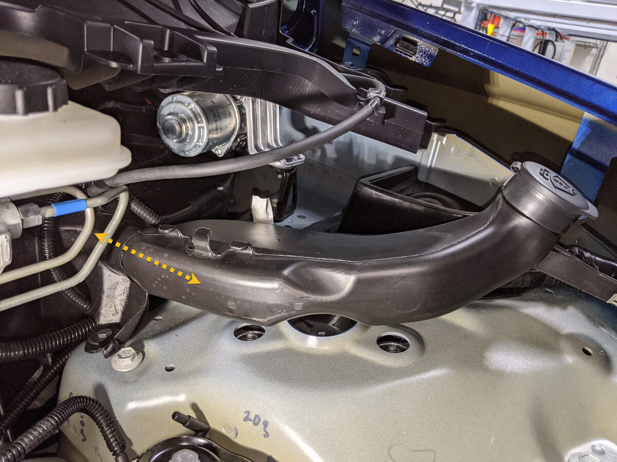 Disconnect washer hose from washer pump to Y-tube fitting and release washer hose clip