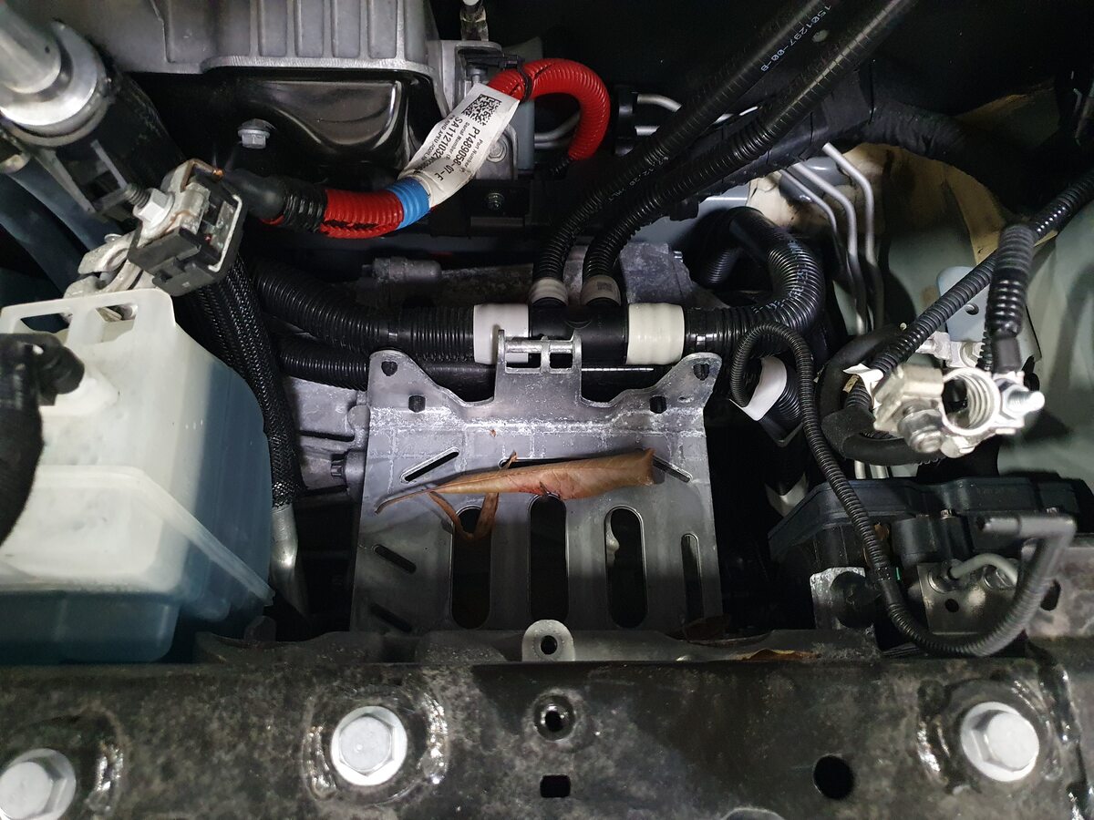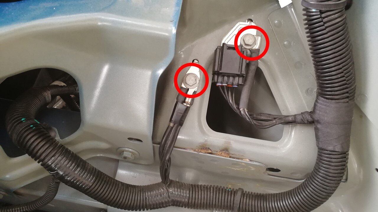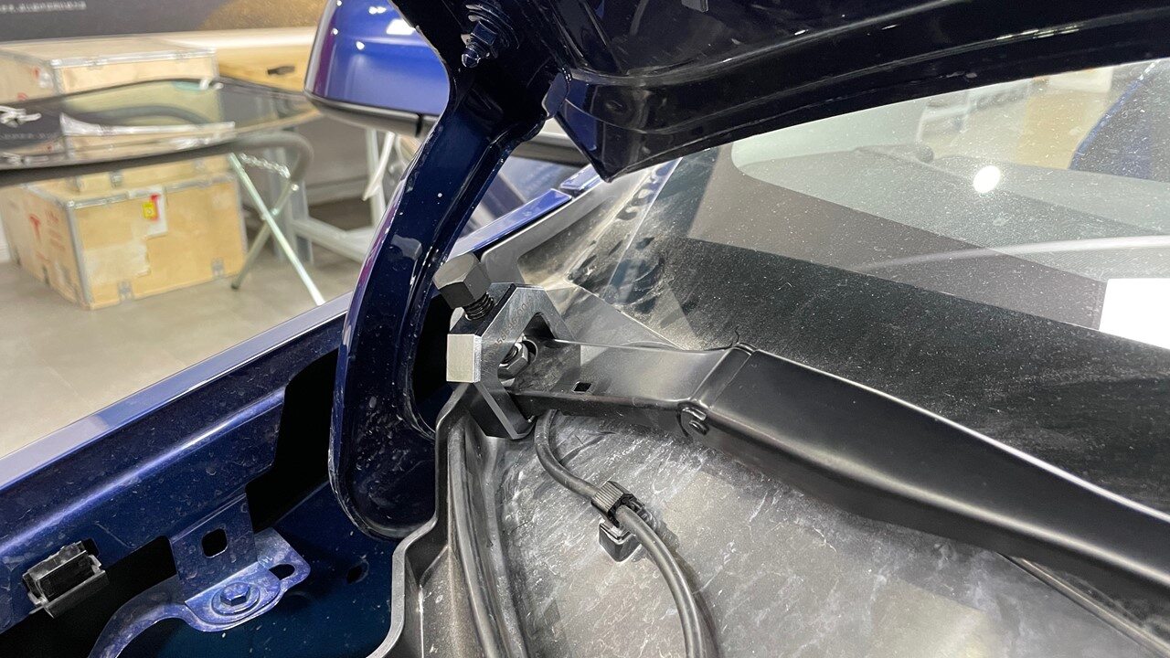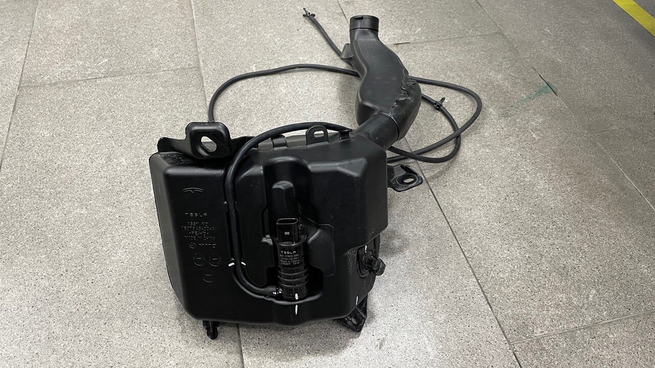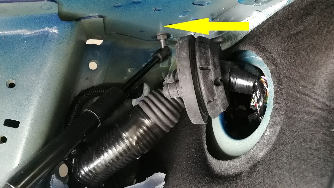 注5x bolts, 10mm, 5 Nm, Newer vehicles may be equipped with 4x bolts and 1x push clip securing frunk to reservoir neck