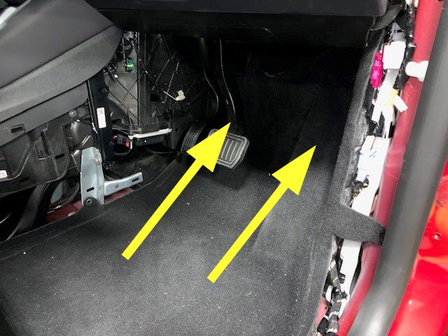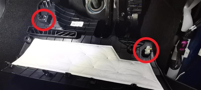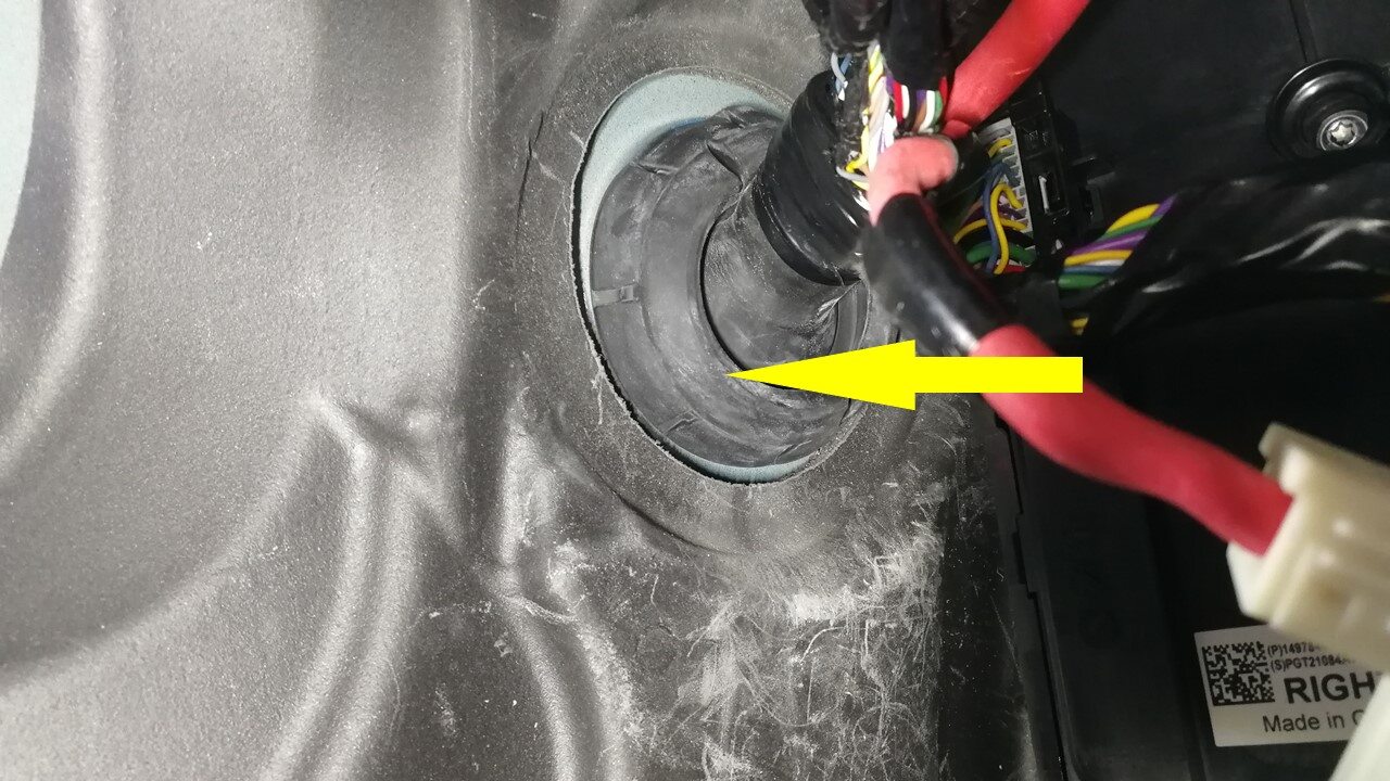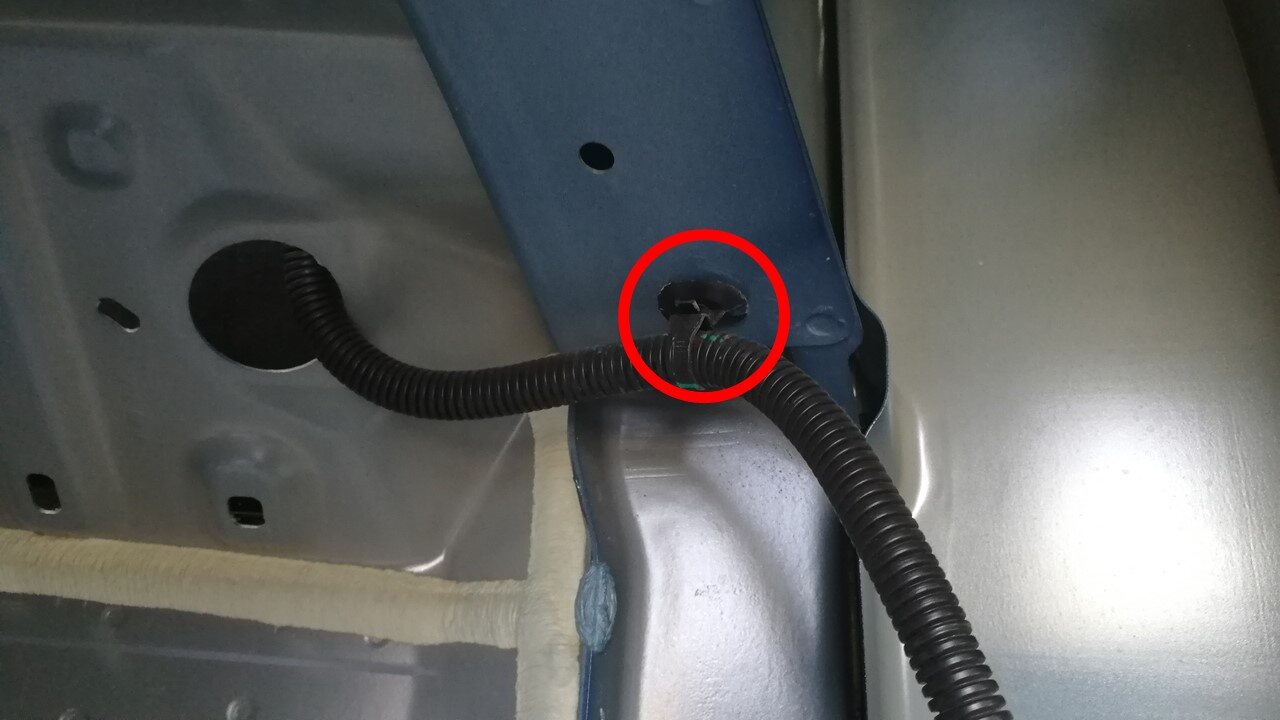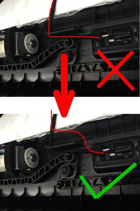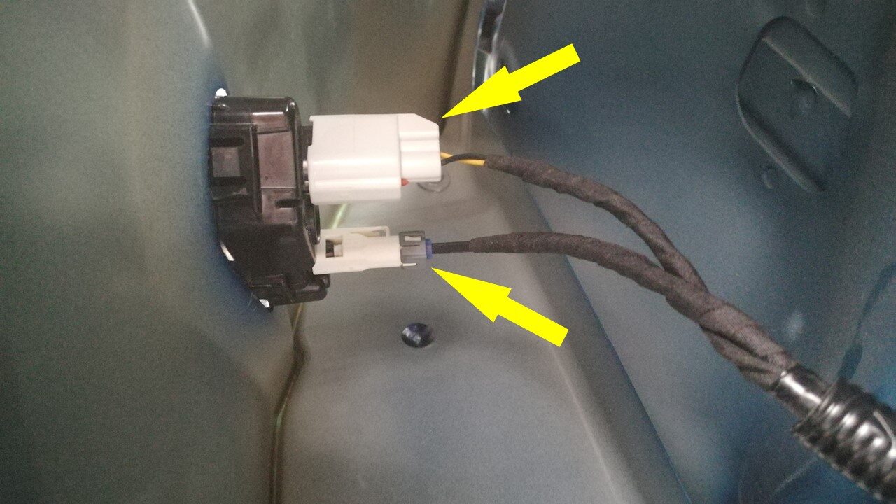 注3x connectors, Note puddle lamp harness routing to prevent blocking movement of pawls