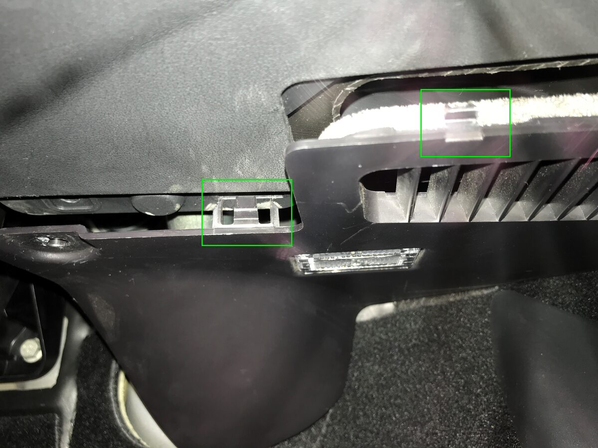 注12x clips, 2x locating pins, Position side panel and align the front locator, then the rear locator, Push side panel towards console to install