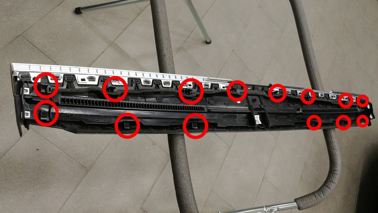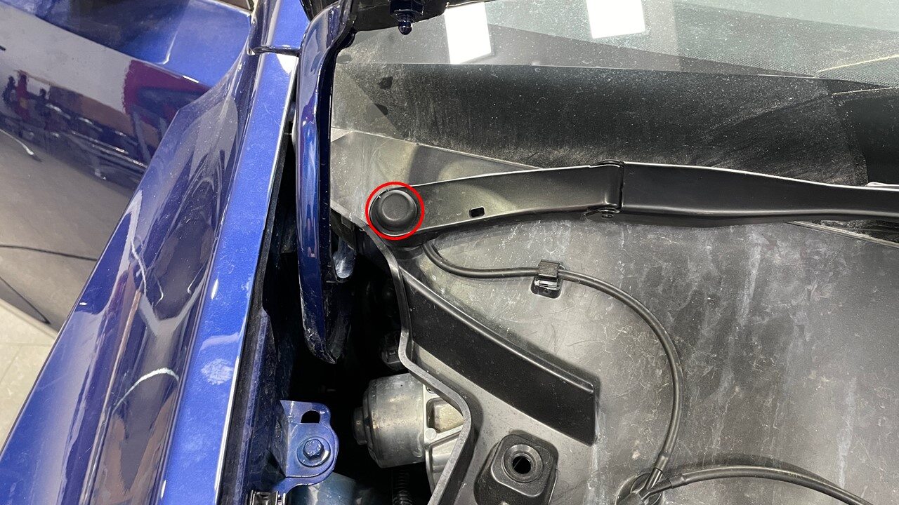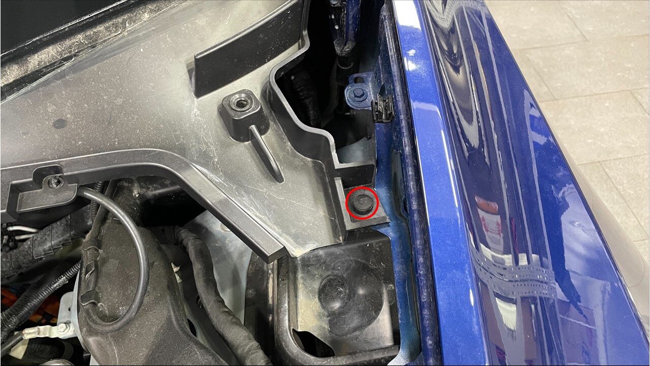 注5x bolts, 10mm, 5 Nm, Newer vehicles may be equipped with 1x push clip securing frunk to washer bottle neck