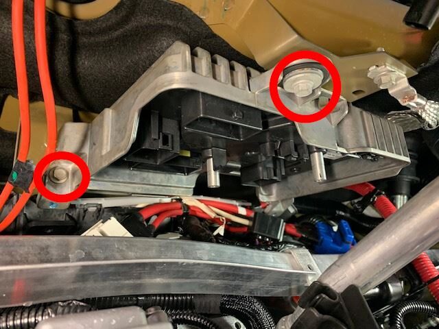 Remove bolts securing front LV controller shield assembly and remove from vehicle