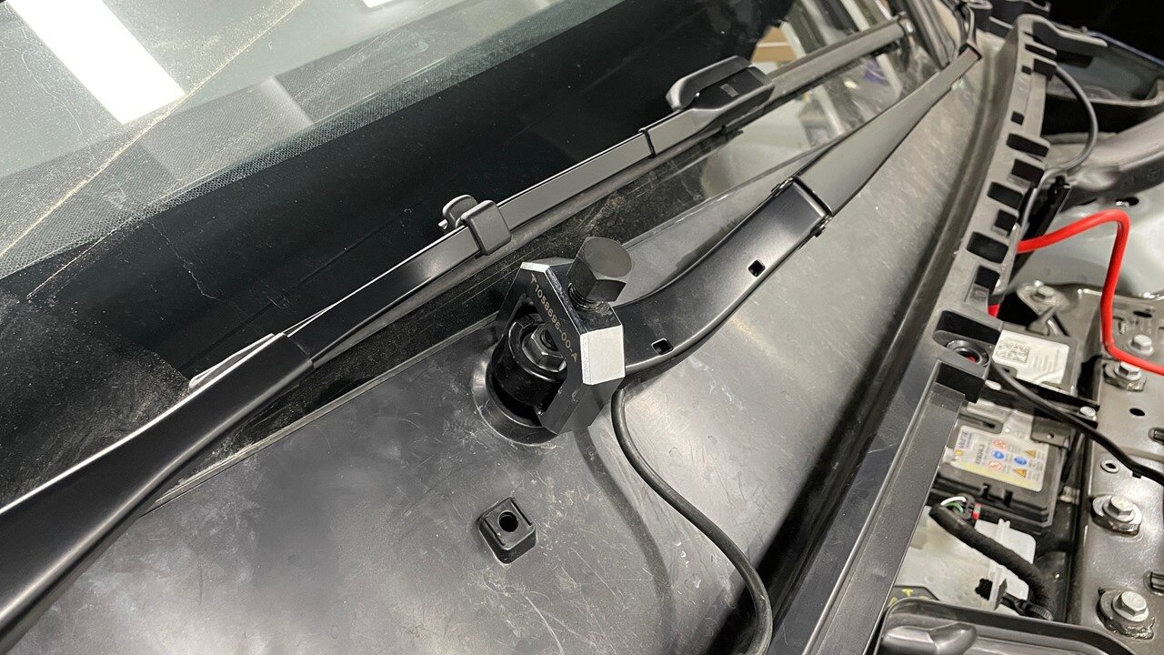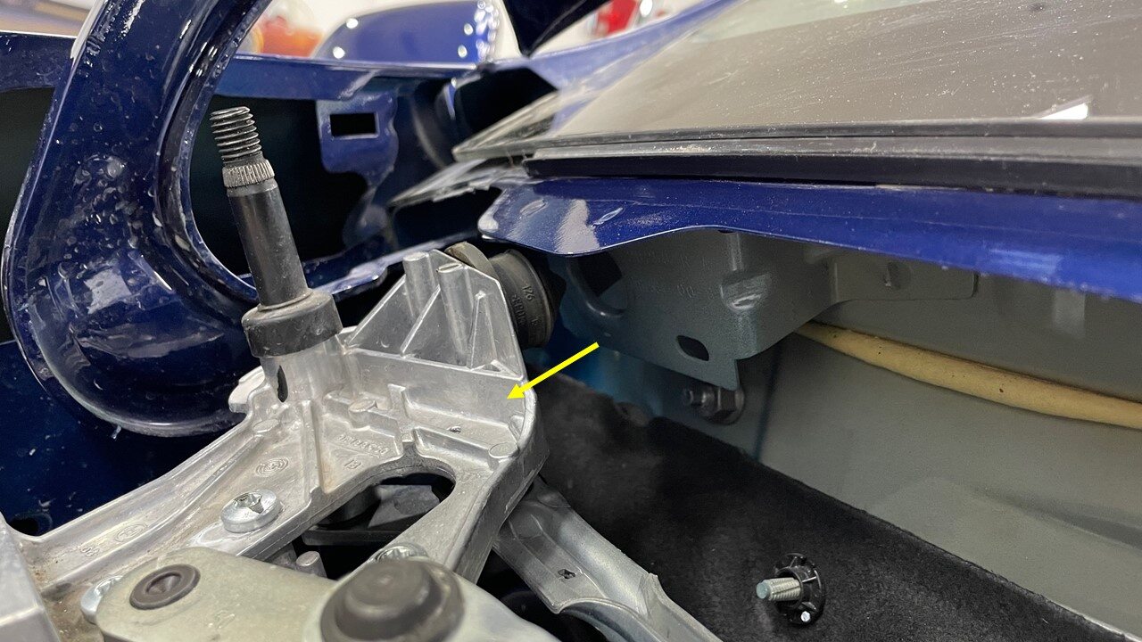 注1x rubber anchor, Carefully pull wiper assembly forward to disengage rubber anchor from under windshield bracket