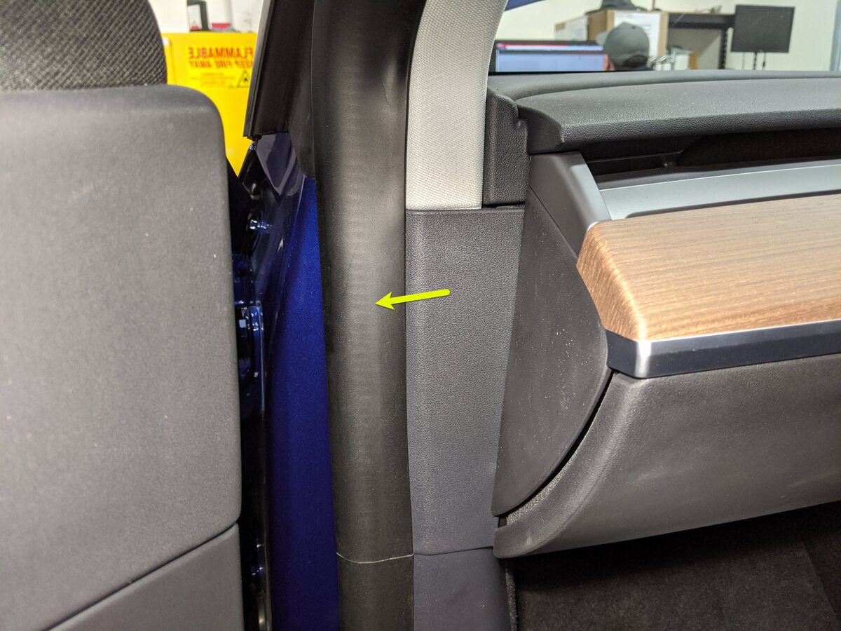 注1x clip, 1x tab, Align the bottom tab then push the top clip to fully seat mid A-pillar, Pull seal over trim