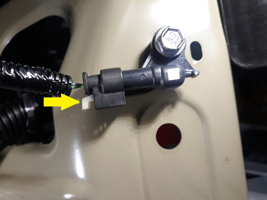 Connect front harness white connector X909 to LH body harness and clip to LH body controller
