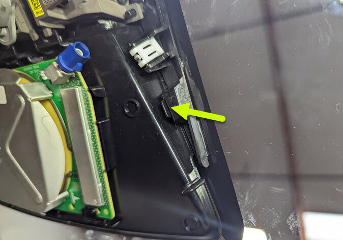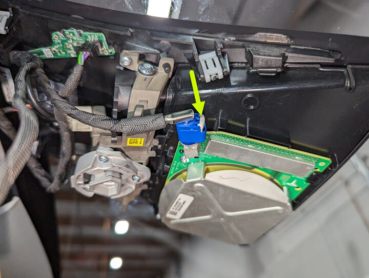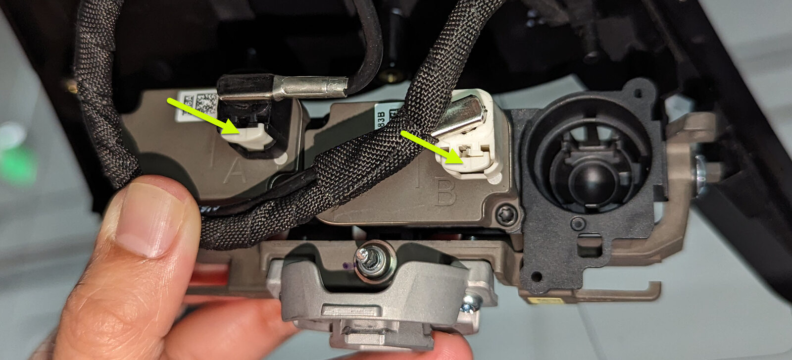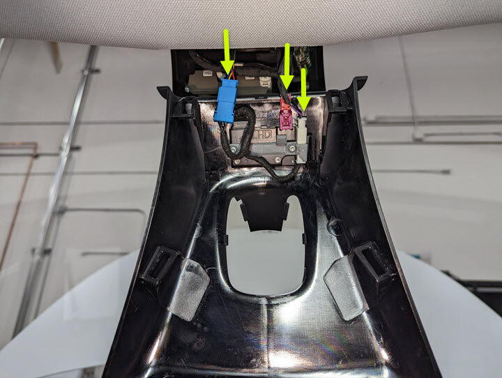 - Release the locking tabs, and then disconnect the forward facing camera assembly connectors (x2).