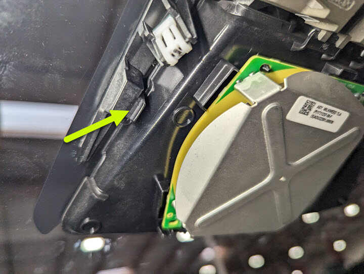 - Position the glare shield to the windshield bracket, and then secure the tabs (x2) that attach the glare shield to the windshield bracket.