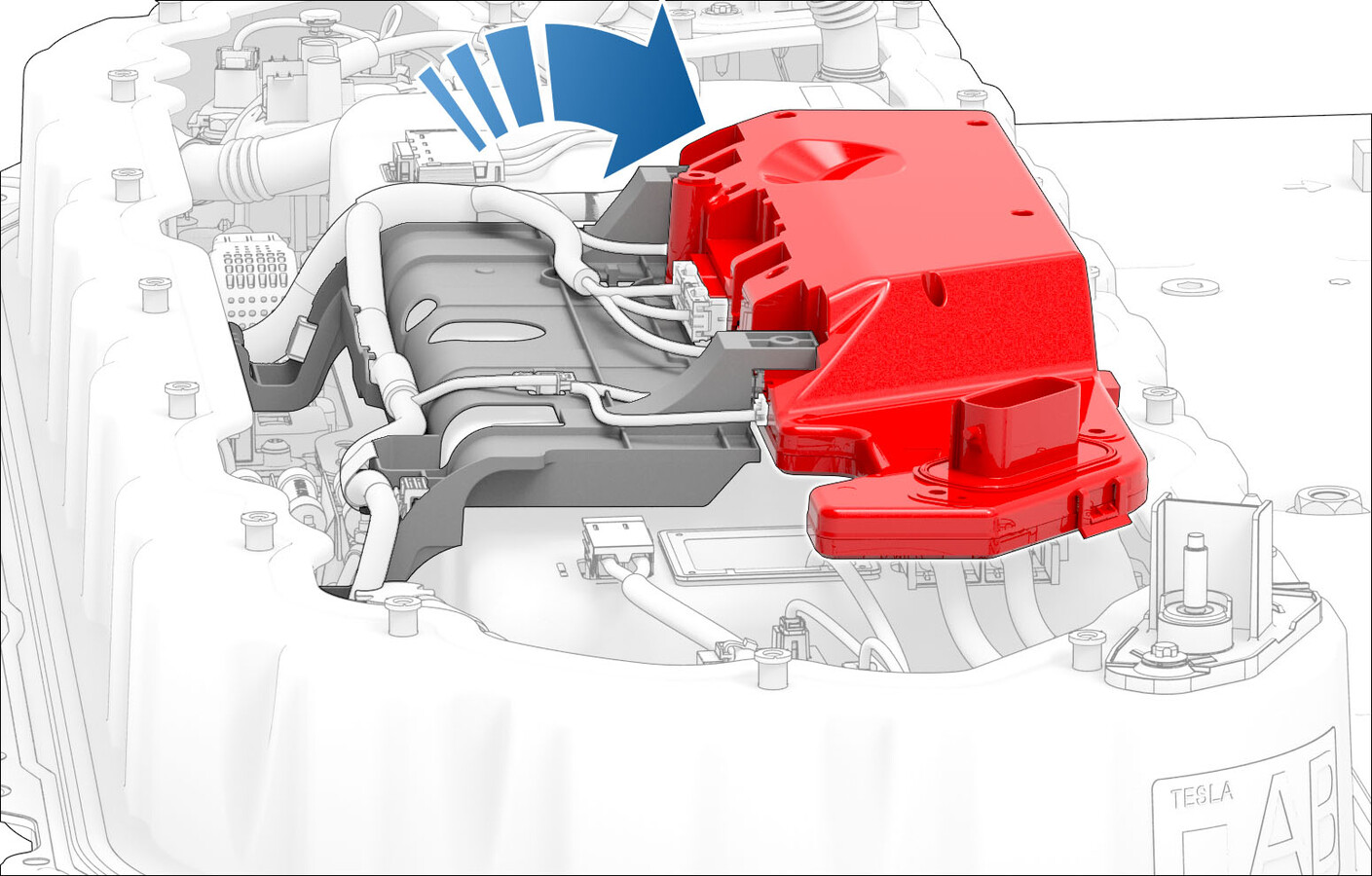 - 拆卸高压电池仓盖板。请参阅盖板 - 高压电池仓(拆卸和更换)。