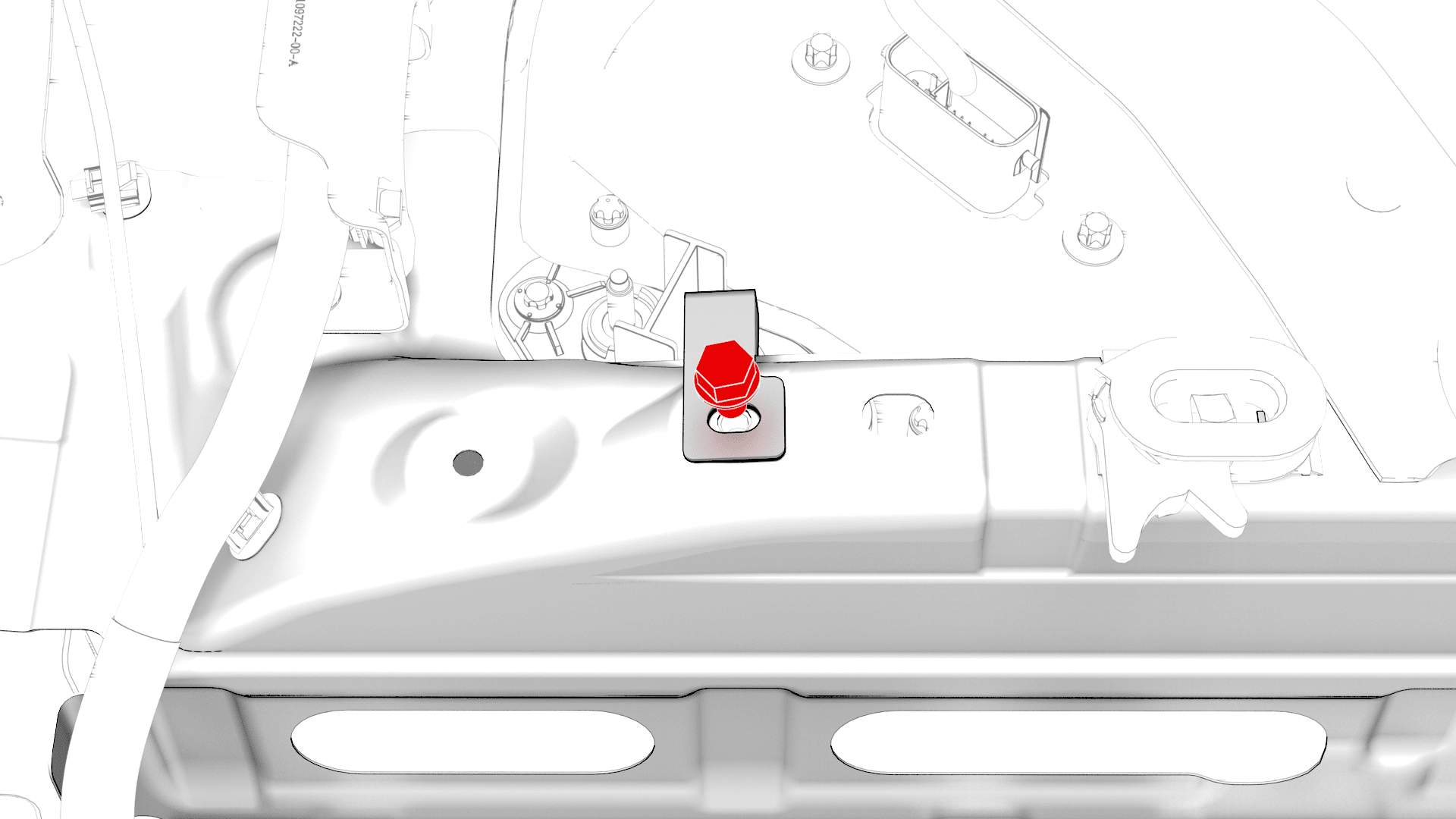 将 12V 直流-直流直通件安装到高压电池仓中,安装将 12V 直流-直流直通件固定到高压电池仓的螺栓。紧固后,使用油性记号笔标记螺栓。