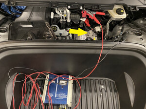 注Release positive terminal cover, Connect 12v maintainer to positive terminal and chassis ground, Leave LV battery disconnected