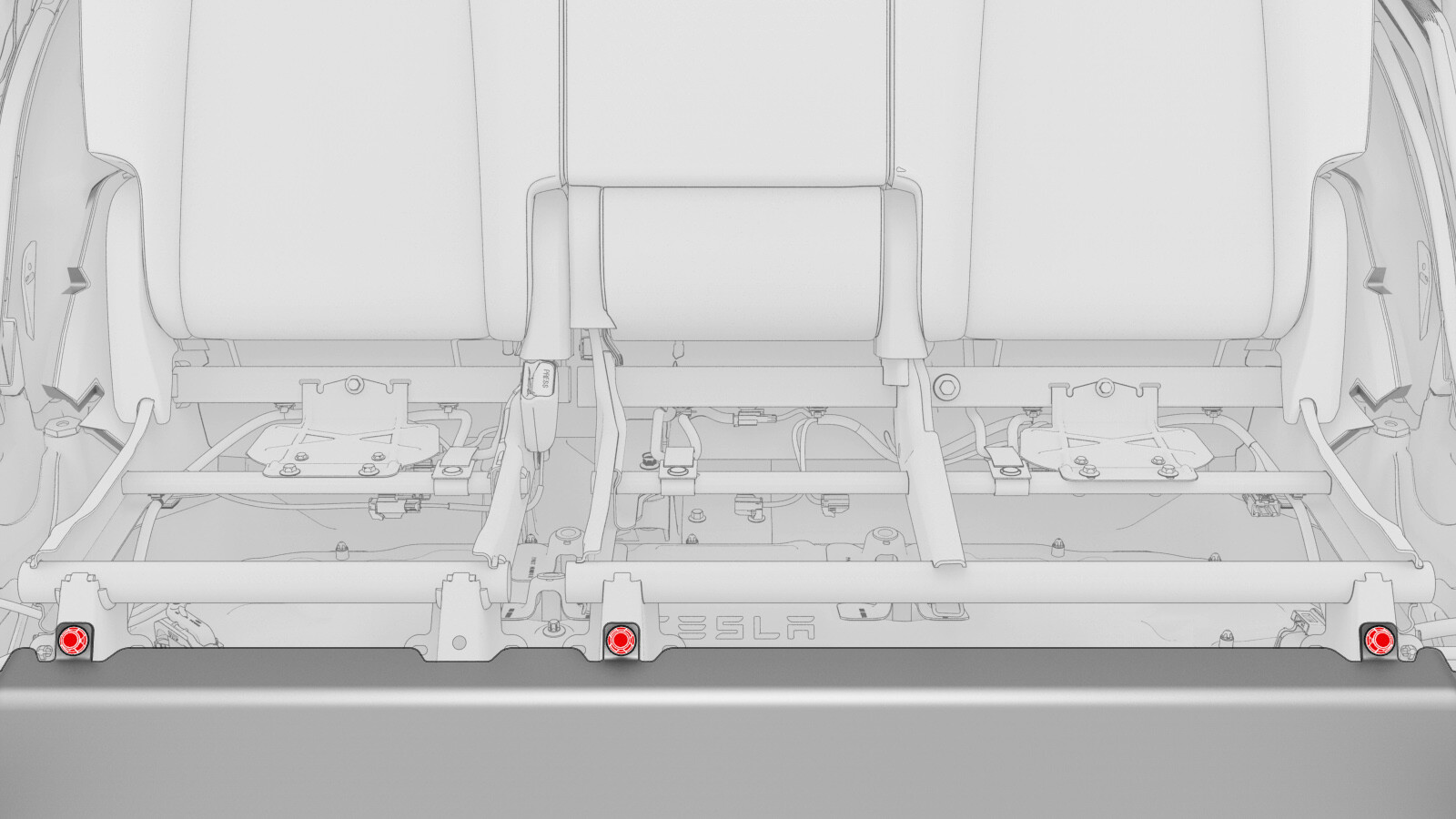 - 松开将主地毯固定到座垫框架下部的卡子(3 个)。