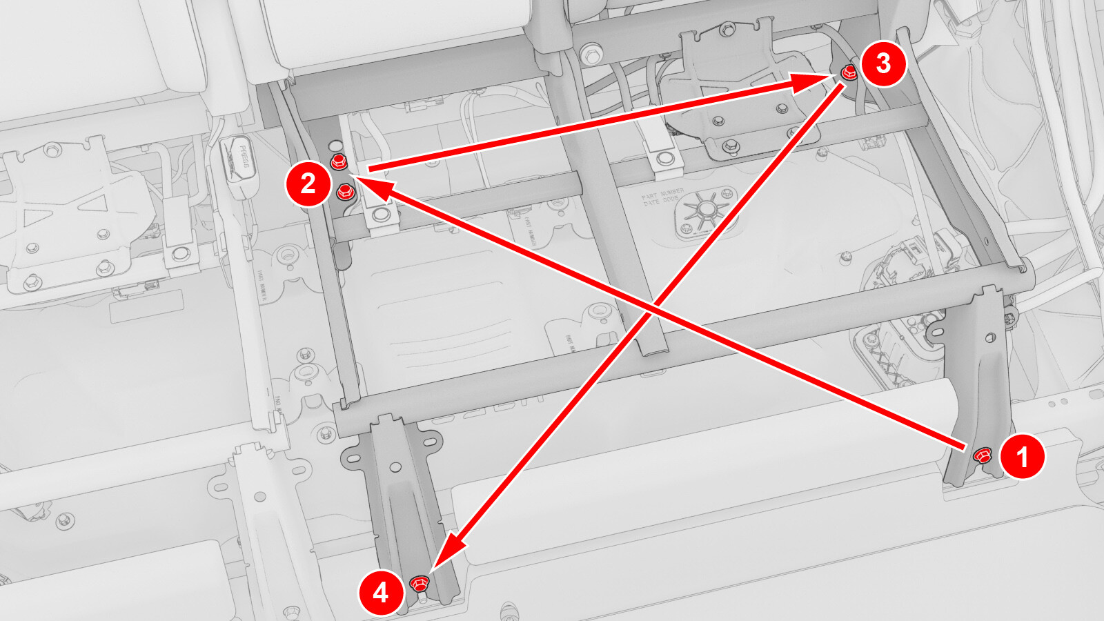 37 Nm (27.3 lbs-ft)注最前面的两个螺栓位于主地毯后方。注按照如下顺序紧固:- 前排外侧