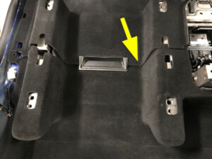 - Pull the 2nd row carpet towards the front of the vehicle to release it from the LH 2nd row seat.