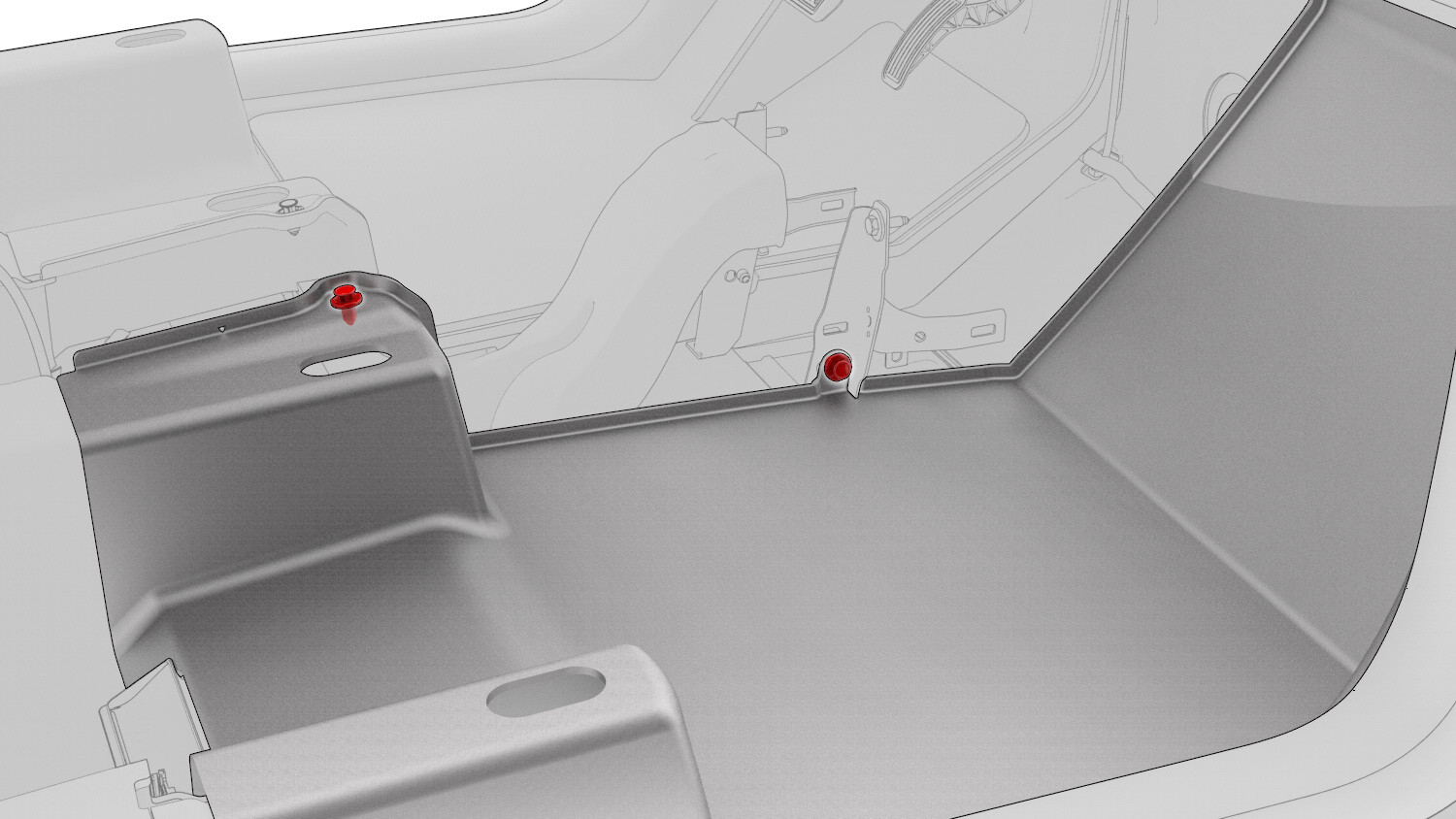- 将 RH 前毡毯装入车辆,然后紧固将 RH 前毡毯固定到车身的夹子。