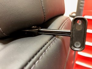 - 逆时针转动头枕拆卸工具把手,然后将工具从驾驶位靠背上拆下。