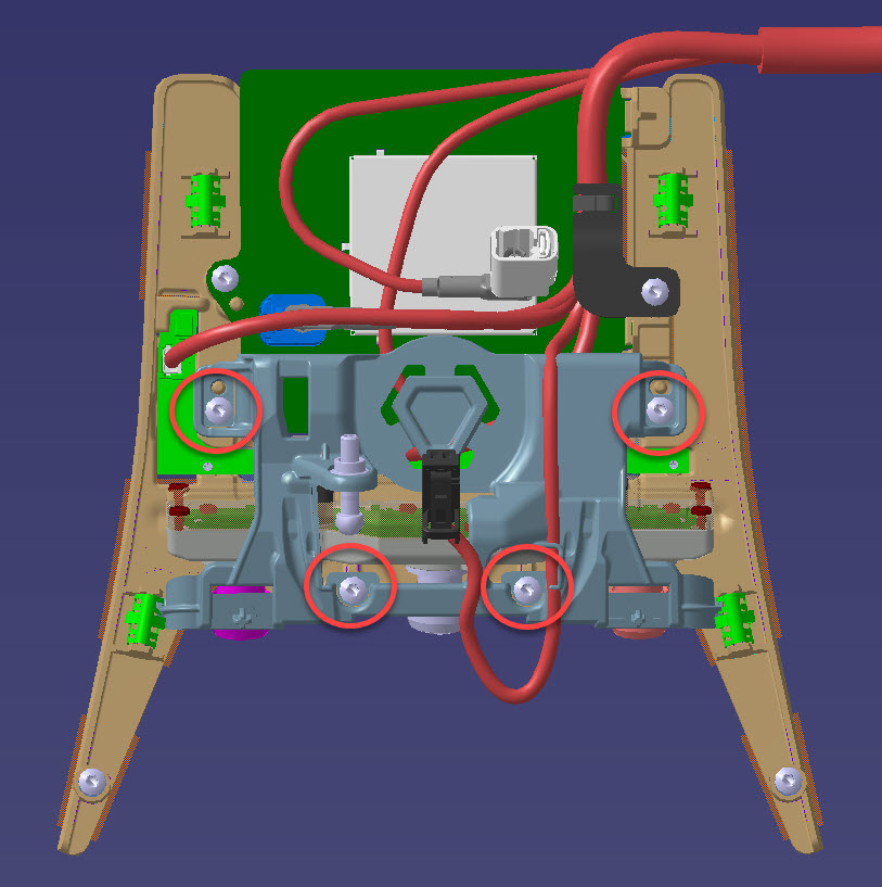 注将锁片下方的电路板连接器端滑到挡风玻璃支架上,然后将电路板上的孔洞按压在挡风玻璃支架的定位销上。