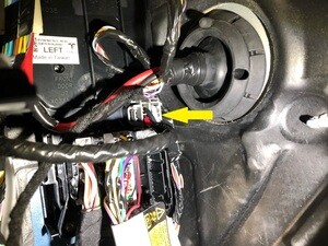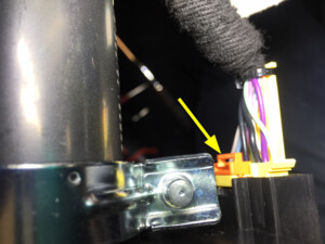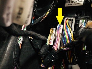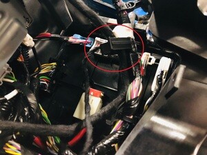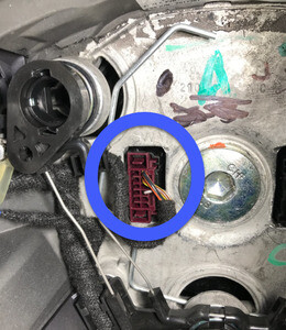 从左侧脚部空间盖板上拆下连接器,然后将其从车辆上拆下