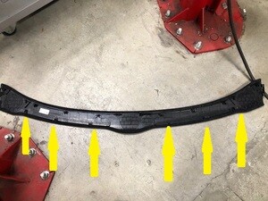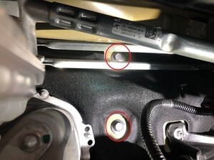 注5 个螺栓,10 毫米,5 Nm;新款车可能加装了 1 个将前备箱固定到清洗器储液罐颈部的推拉式卡子