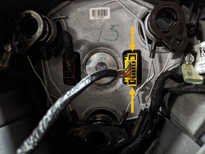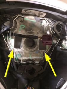 注1 个连接器;确保驾驶位气囊线束顺畅通过驾驶位气囊和喇叭机构的中间区域