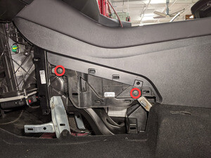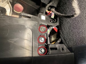 安装用于固定左侧脚部空间盖板的螺钉和卡子
