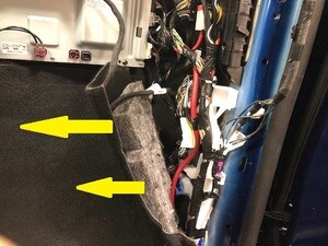 注将 LH 脚部空间进气槽拉向车辆 LH 侧以便将其拆下