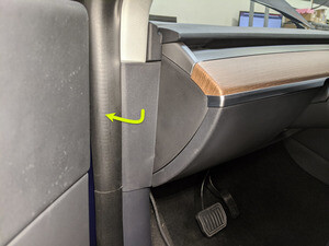 注1 个卡子,1 个锁片;对齐底部锁片,然后推动顶部卡子,使其完全就位于 A 柱中部;将密封件拉过饰板