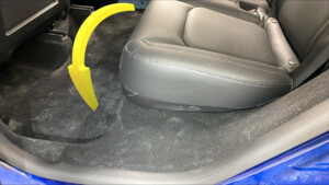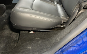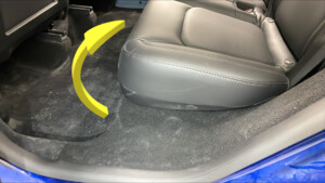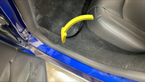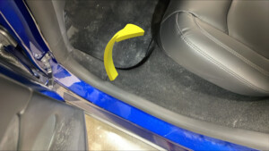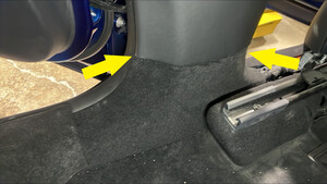 将 LH B 柱下部饰板放入车内,然后固定将饰板固定到车辆的夹子。