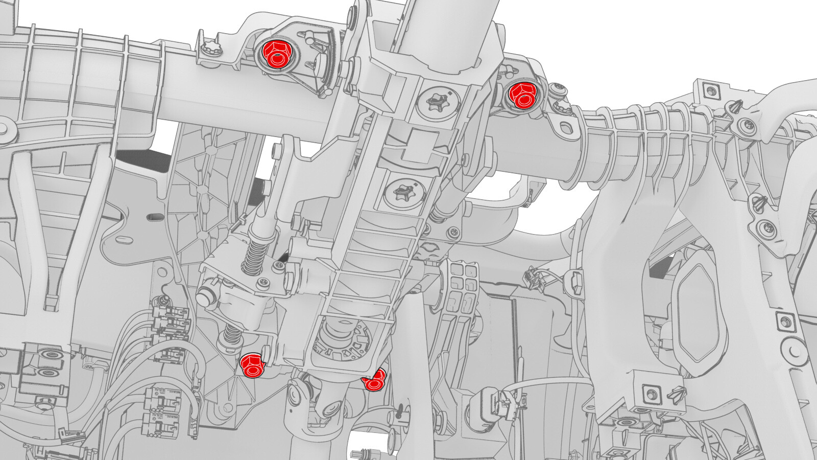 - 预装将横梁固定到 HVAC 总成的螺栓(4 个)。