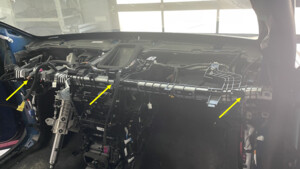 - 安装将仪表板线束固定到横梁的夹子(15 个)。