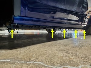 注Ensure vehicle is not charging, Note the MYSP lifting points are more narrow than the MY