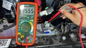 注Set multimeter to DC voltage, Confirm multimeter is properly measuring voltage by testing LV battery, Touch lightly and do not damage terminals