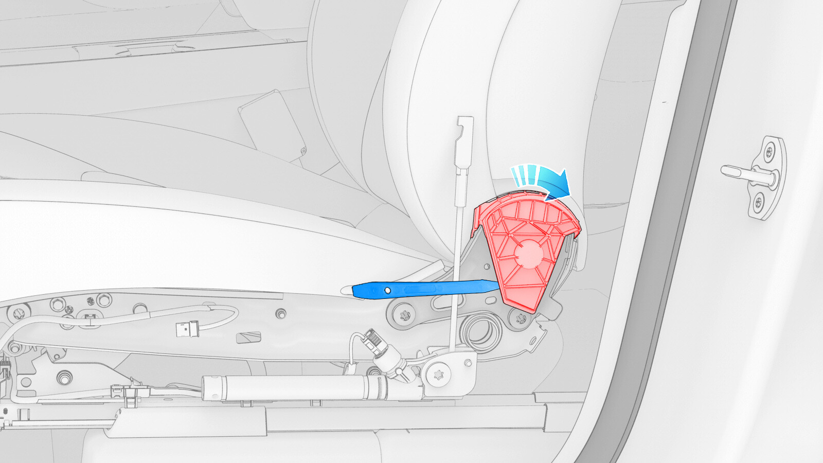 - 使用夹子工具将钻石盖板与座椅框架分开,顺时针旋转,然后将其从 LH 前座椅上拆下。