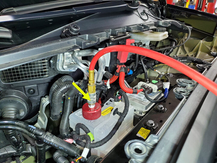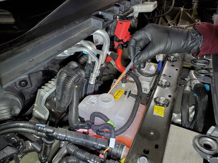 - Disconnect the enclosure leak tester from the coolant reservoir pressure test adapter.