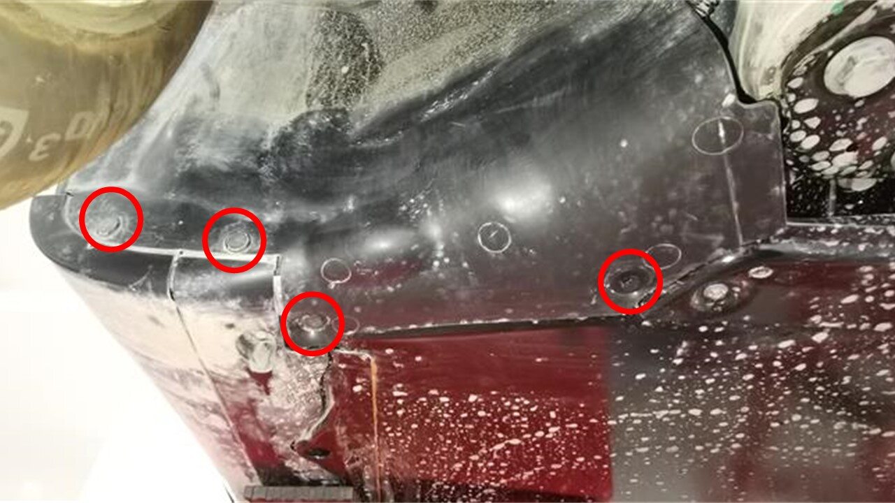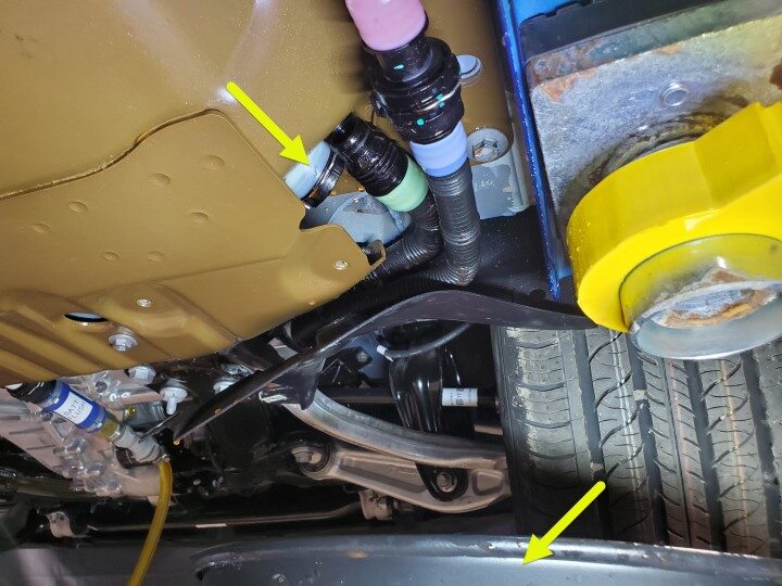 - Secure the RH front wheel liner away from the HV battery with a bungee cord.