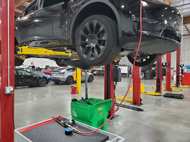 - Disconnect the shop air supply from the coolant refill tool.