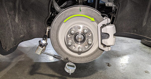14. 标记后制动盘的顶部中心以确定起点。