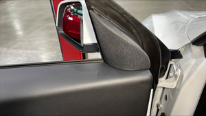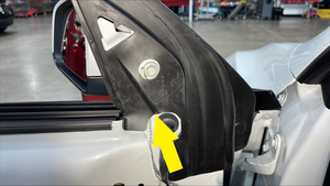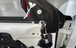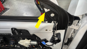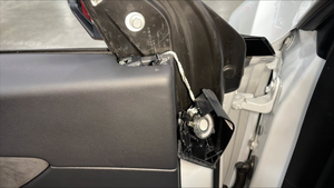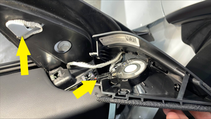 - Take note of the tether routing, and then unhook the tether to remove the LH front door tweeter assembly from the door assembly.