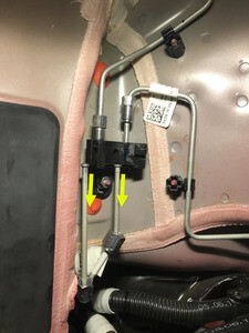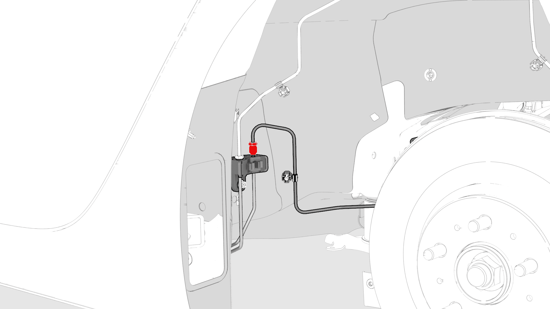 - 松开将制动管路固定到 LH 后接线盒的黑色夹子。
