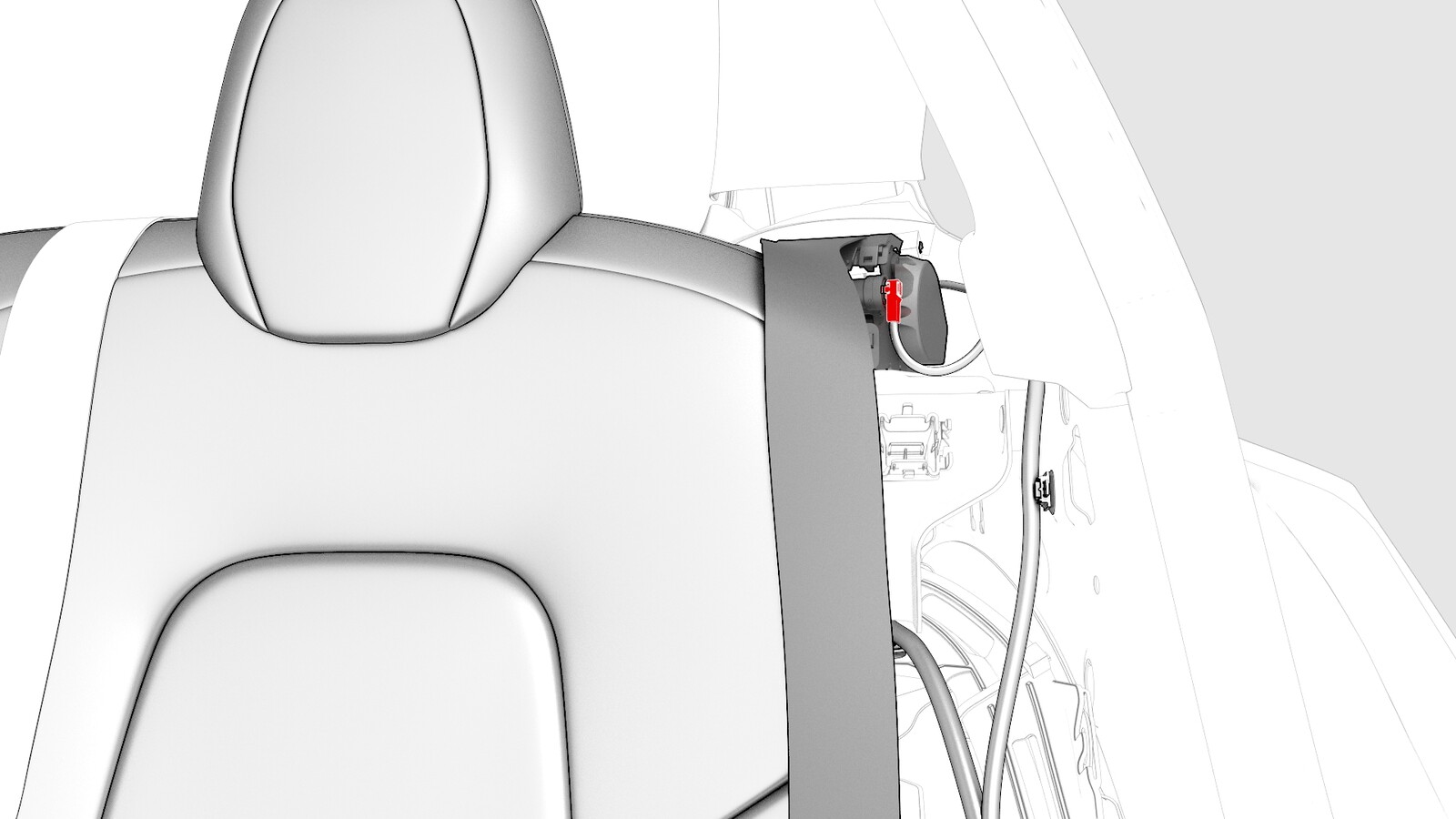 - 将电气连接器连接到第二排座椅 LH 座椅安全带卷收器,然后接合连接器锁。
