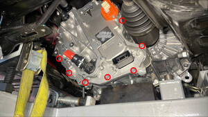 - 向前倾斜副车架固定装置以便能够到电机支座紧固件。