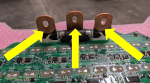 - 拆卸将后驱动单元电机三相端子固定到后驱动单元左变流器三相端子的螺栓(3 个)。