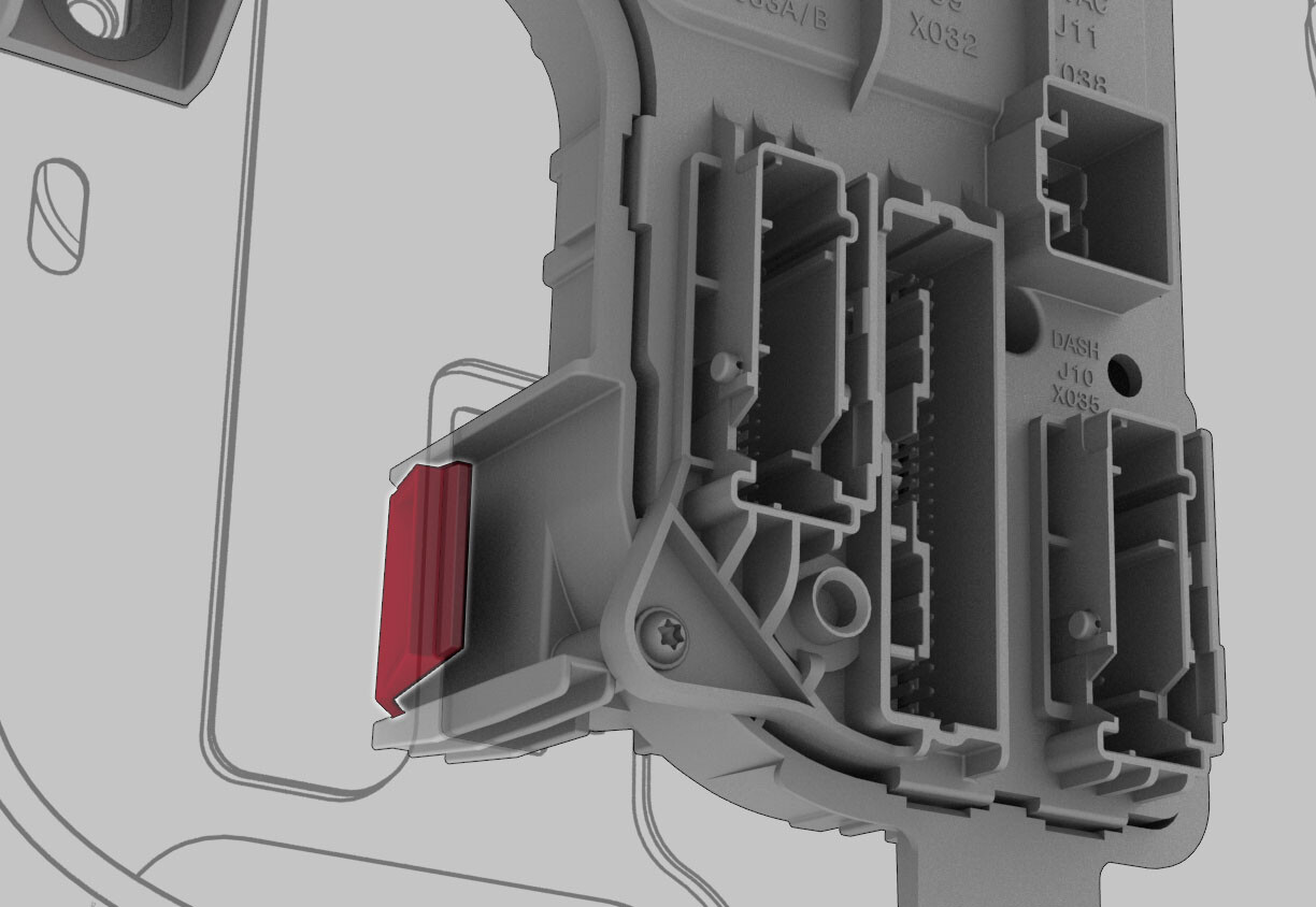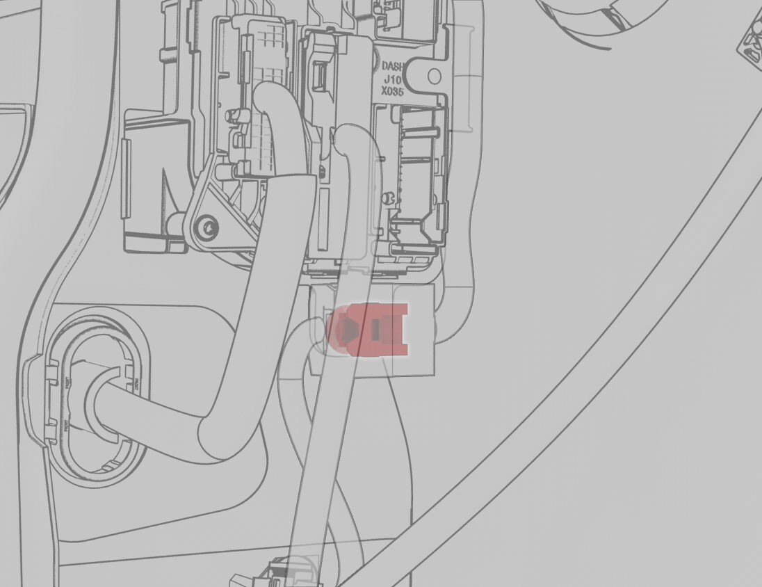 将 J10 仪表板电气连接器安装到左侧车身控制器模块上,然后接合连接器锁。