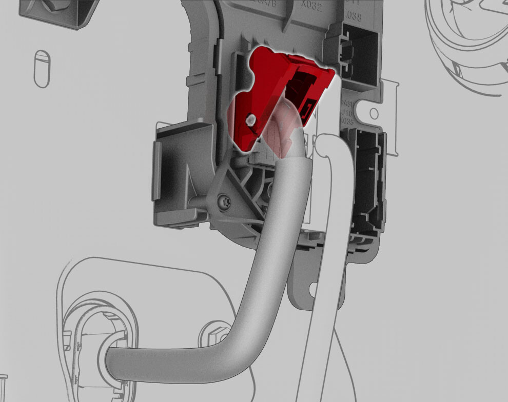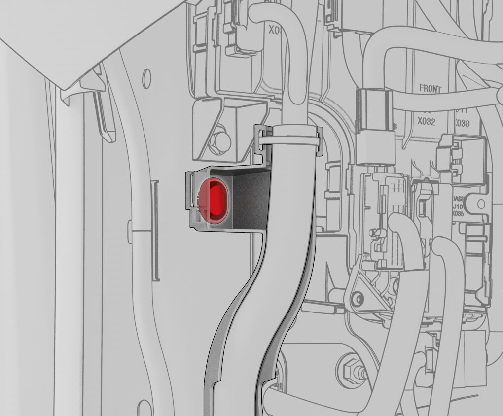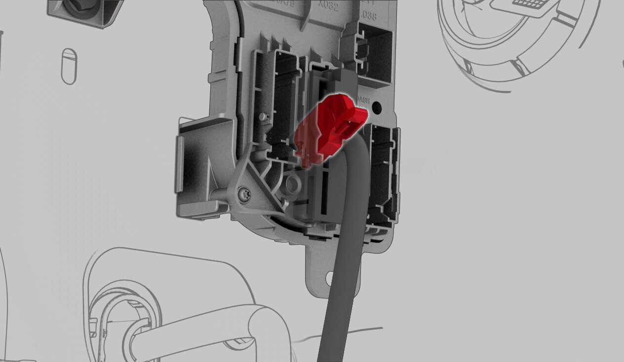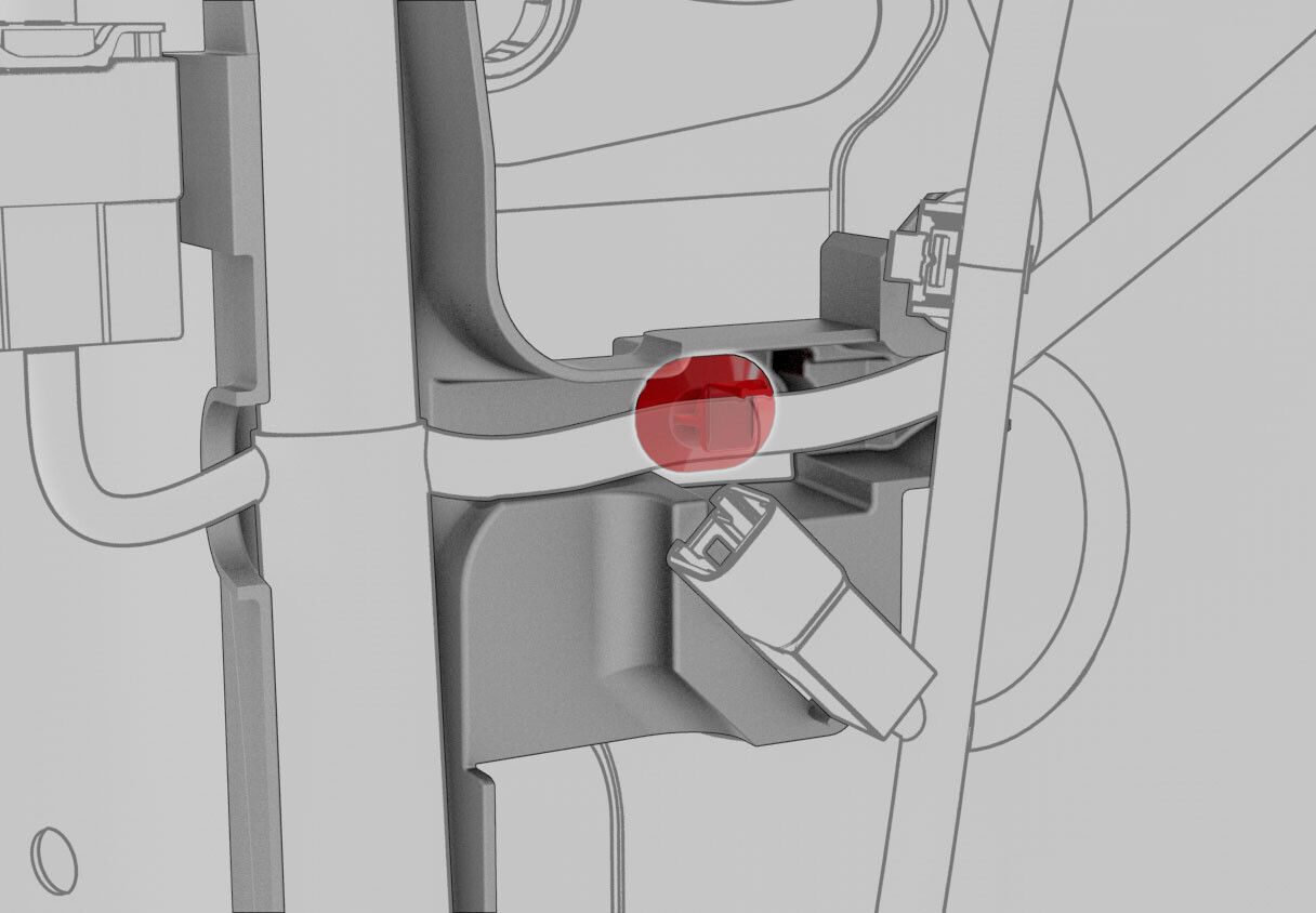 - 安装将电气线束固定到左侧车身控制器模块的夹子。
