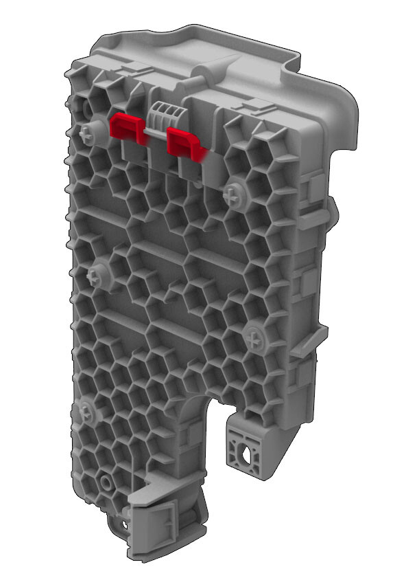 - 松开连接器锁,然后将 J1 电源连接器从左侧车身控制器模块上断开。